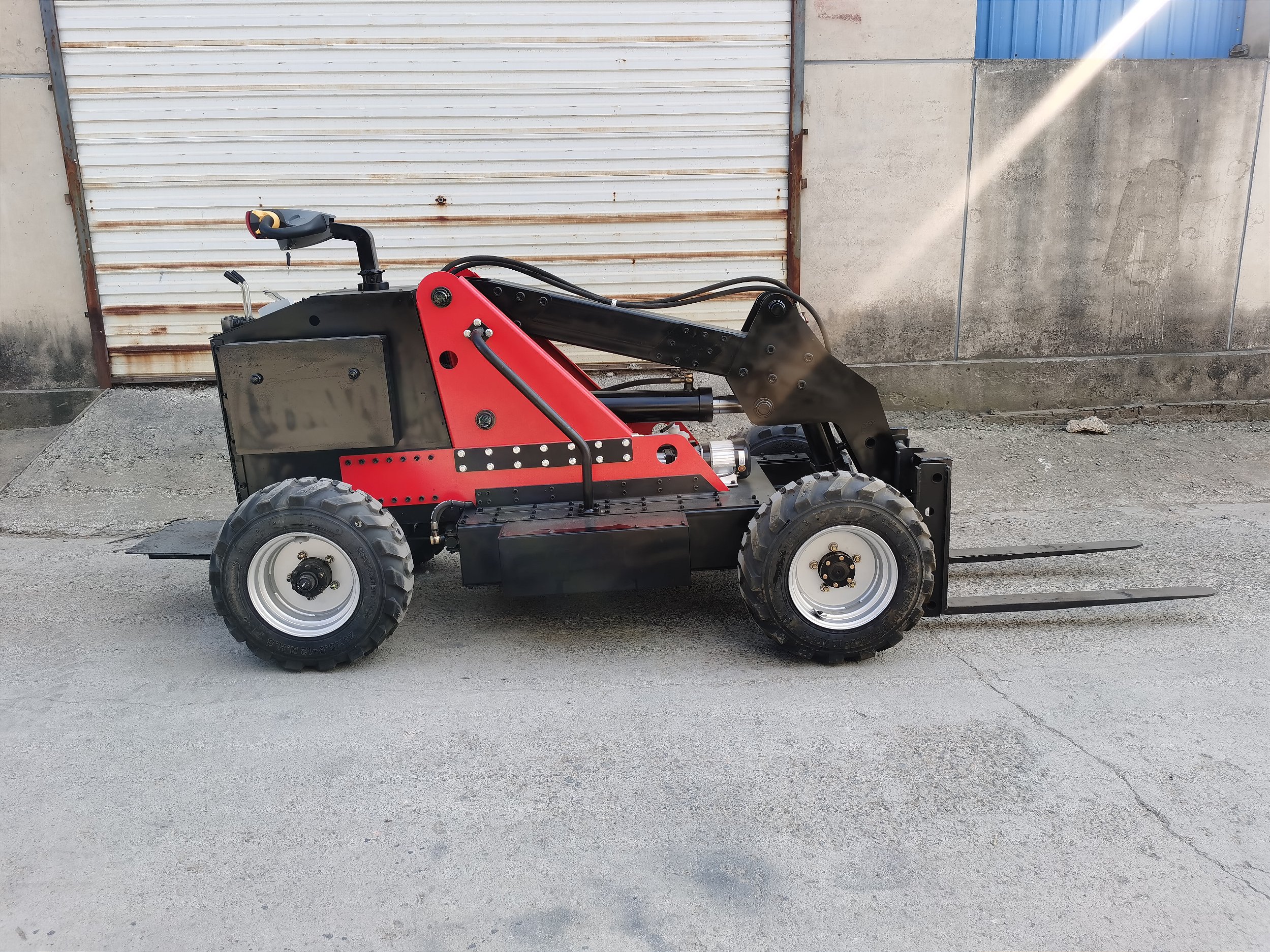 CE 4 rodas Tração Farm Controle Remoto Garfo Elevador Todo Terreno Paleteira Off Road Mini Pequena Empilhadeira Elétrica